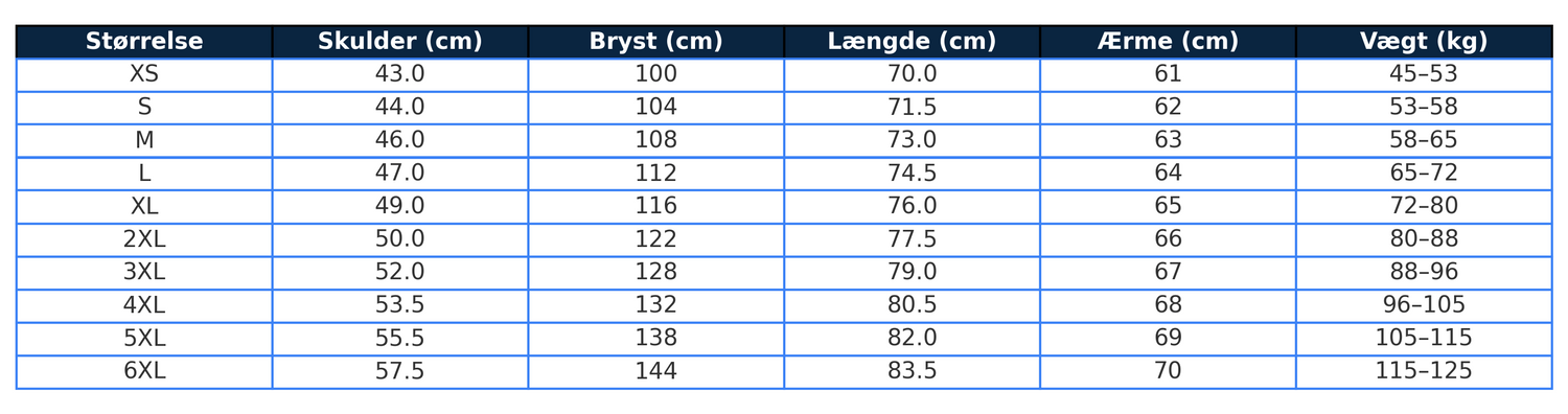 En præcis størrelsesguide findes på produktsiden. Er du i tvivl, kan vores kundeservice hjælpe dig med at finde den ideelle størrelse.