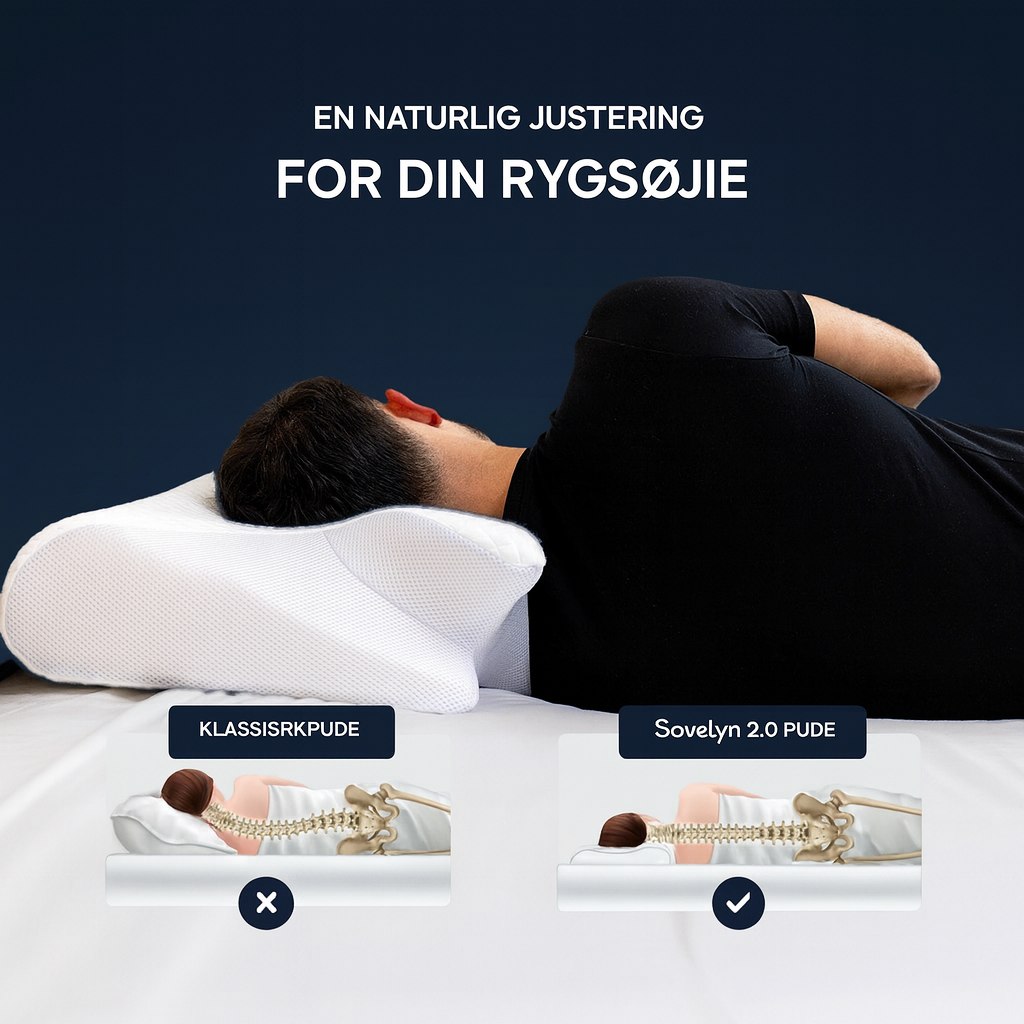 Sovelyn støtter den naturlige krumning i nakken og holder rygsøjlen korrekt justeret under søvn.